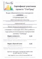 Сертификат участника Всероссийского проекта "СтатГрад", 2011-2012 г. |